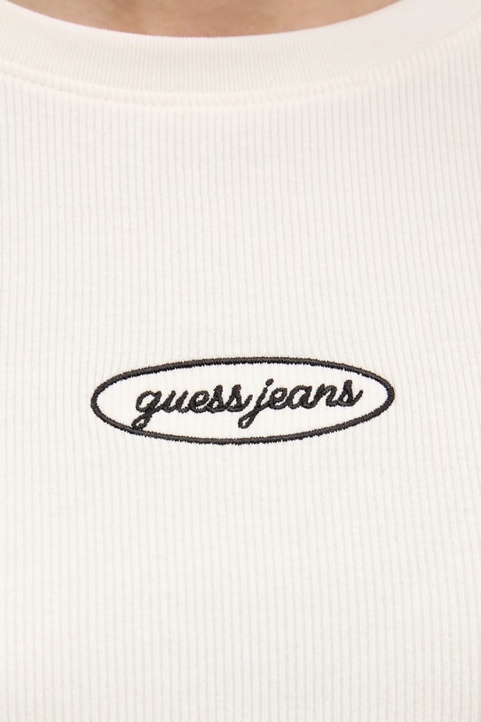 Эта футболка из коллекции Guess Jeans выполнена из тонкой, высокоэластичной ткани. Модель выполнена из исключительно комфортного материала с высоким содержанием хлопка. - Приталенный крой, не стесняющий движений. - Классический круглый вырез. - Модель выполнена из трикотажного полотна в рубчик, которое отличается особой эластичностью и мягкостью, благодаря чему хорошо облегает тело и обеспечивает комфорт при носке. - Плоские швы защищают кожу от натирания и раздражения и обеспечивают высокий уровень комфорта во время занятий спортом.