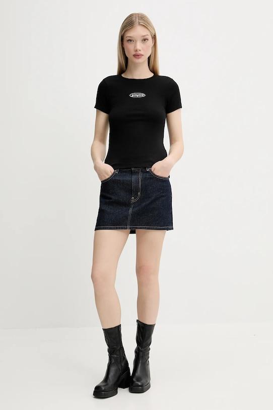 Эта футболка из коллекции Guess Jeans выполнена из тонкой, высокоэластичной ткани. Модель выполнена из исключительно комфортного материала с высоким содержанием хлопка. - Приталенный крой, не стесняющий движений. - Классический круглый вырез. - Модель выполнена из трикотажного полотна в рубчик, которое отличается особой эластичностью и мягкостью, благодаря чему хорошо облегает тело и обеспечивает комфорт при носке. - Плоские швы защищают кожу от натирания и раздражения и обеспечивают высокий уровень комфорта во время занятий спортом.