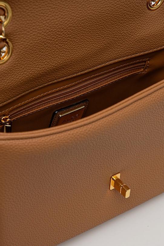 Небольшая сумочка из коллекции Aldo. Модель на молнии, выполнена из экокожи. В комплекте тканевый пыльник, защищающий изделие от пыли. - Изделие содержит переработанные волокнистые материалы. - Входящий в комплект тканевый чехол защищает изделие от пыли. - Несъемный, нерегулируемый ремешок. - Клапан застегивается на пряжку. - Имеет два внутренних кармана: один прорезной, другой на молнии. - Не подходит для формата А4. - В комплект модели входит брелок. - Глубина: 7 см. - Высота: 15 см. - Ширина у основания: 23 см.