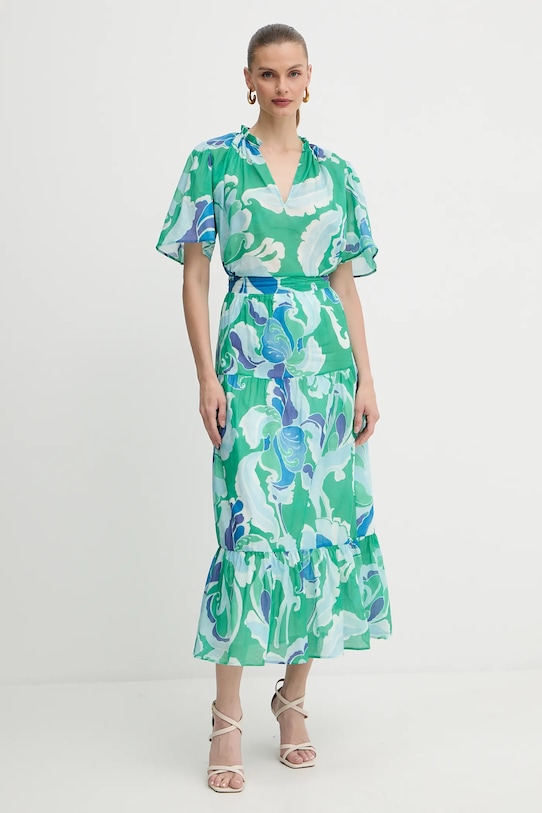 Эта блузка из коллекции Morgan выполнена из ткани с рисунком. Модель выполнена из дышащего хлопкового материала. – Инициатива «Лучший хлопок». Изделия с этой маркировкой содержат не менее 50% хлопка от розничного продавца или бренда, участвующего в инициативе «Лучший хлопок» и инвестирующего в развитие BCI. - Свободный крой, обеспечивающий полную свободу движений. - Острый вырез. - Модель с воротником-стойкой. - Тонкая, неэластичная ткань. - Длина: 58 см. - Ширина под мышками: 52 см. - Размеры указаны для размера: 36.