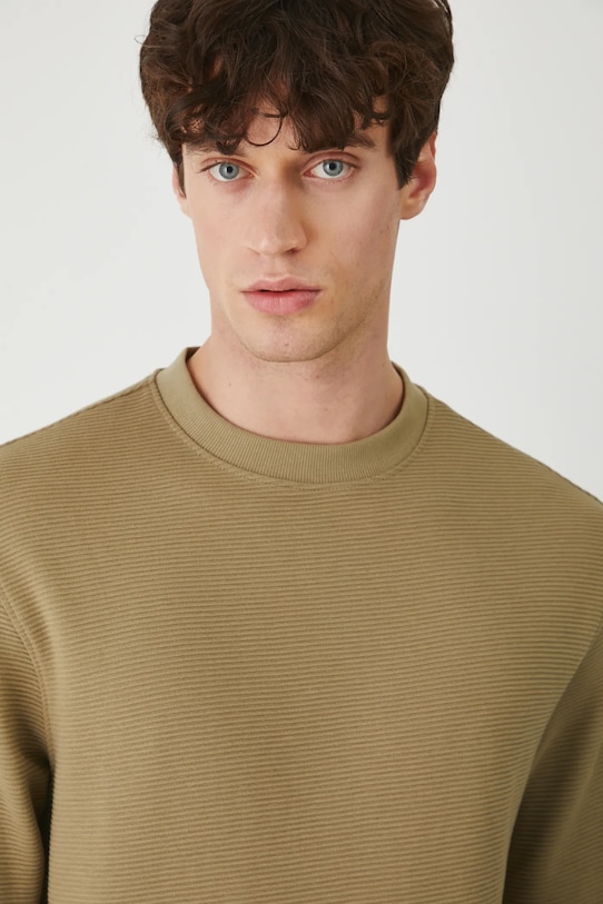 Лонгслив из коллекции Medicine. Изготовлен из трикотажной ткани в рубчик. - Материал с сертификатом Oeko-Tex Standard 100 гарантирует, что текстильные изделия, на которых он нанесен, не содержат веществ, вредных и потенциально опасных для человека и окружающей среды. - Обычная посадка. - Длинный рукав. - Заниженная линия плеча. - Круглый вырез. - Отделка ребер. - Трикотажное полотно в рубчик. - Длина рукава (от горловины): 83,1 см. - Длина: 74 см. - Ширина под мышками: 58 см. - Размеры указаны для размера: L.