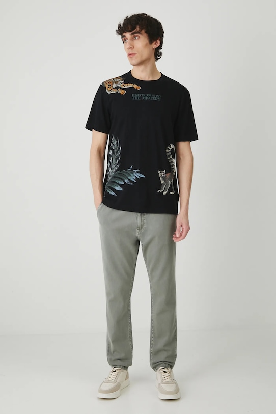 Футболка из коллекции «Медицина». Изготовлена из трикотажного полотна с принтом. - Материал с сертификатом OEKO-TEX Standard 100 гарантирует, что текстильные изделия, на которых он нанесен, не содержат вредных и потенциально опасных для человека и окружающей среды веществ. - Обычная посадка. - Короткий рукав. - Круглый вырез. - Модель с принтом. - Печать спереди с надписью: вечно доверяя тайне. - Принт с растительными и животными мотивами. - Длина: 74 см. - Ширина груди: 57,2 см. - Размеры указаны для размера: L.