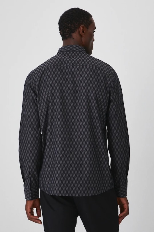 Эта рубашка из коллекции Medicine выполнена из ткани с мелким узором и имеет классический, слегка жесткий воротник. - Рубашка прямого кроя мягко облегает фигуру, но не подчеркивает ее, обеспечивая свободу движений. - Длинный рукав. - Манжеты на пуговицах. - Слегка усиленный классический воротник Kent. - Застежка на пуговицы. - Ткань с мелким рисунком. - Окружность воротника: 43,5 см. - Длина рукава: 68 см. - Длина: 77,6 см. - Ширина груди: 57,5 см. - Ширина плеч: 47,5 см. - Размеры указаны для размера: L.