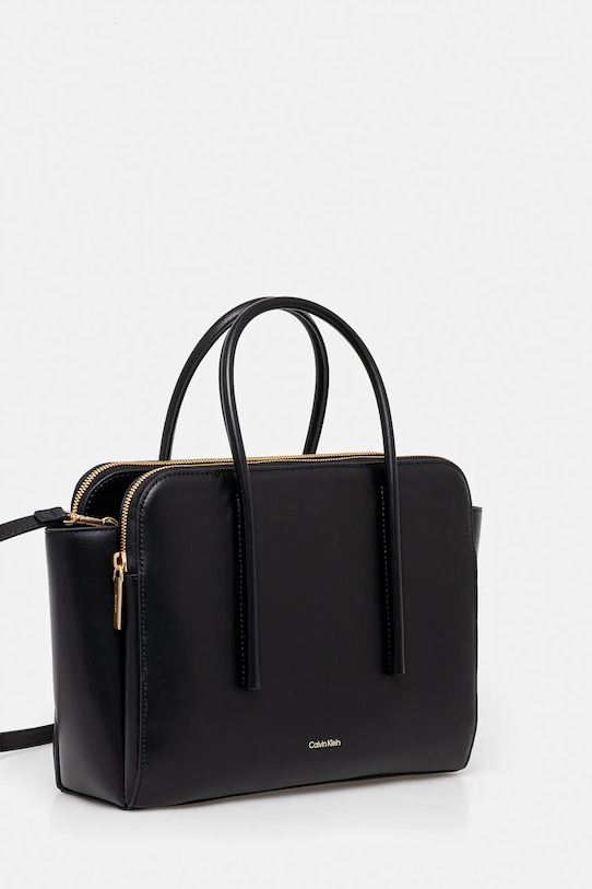 Сумка-тоут среднего размера из коллекции Calvin Klein. Модель на молнии, изготовлена из натуральной кожи. В комплект входит тканевый пыльник для защиты сумки от пыли. - Входящий в комплект тканевый чехол защищает изделие от пыли. - Короткие ручки для удобной переноски в руке. - Съемный регулируемый ремешок. - Застежка-молния и магнитная застежка. - Имеет три отделения: два на молнии и одно на магнитной застежке. - Имеет три внутренних накладных кармана. - Ширина у основания: 27,5 см. - Высота: 23 см. - Глубина: 9 см.