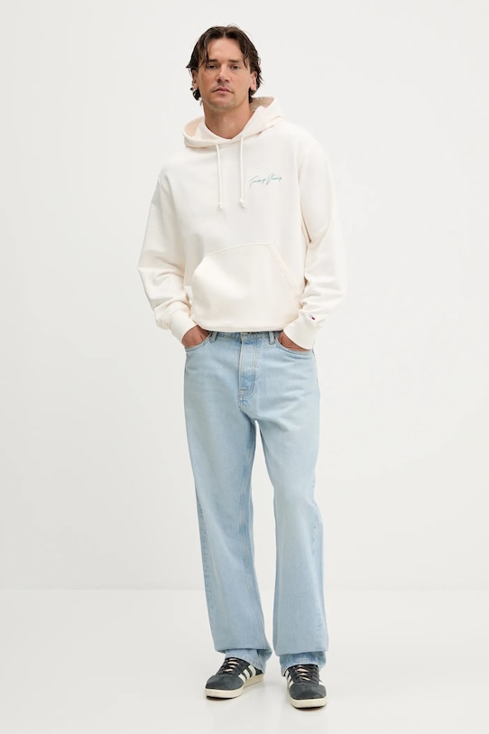 Эта толстовка с капюшоном из коллекции Tommy Jeans выполнена из эластичного трикотажа. Модель выполнена из исключительно комфортного хлопкового материала. - Экологически чистый переработанный хлопок снижает воздействие на окружающую среду за счет сокращения использования химикатов и экономии воды и энергии, улучшая условия жизни и экономическое развитие в регионах производства хлопка. - Обычная посадка. - Практичный вставной карман-кенгуру спереди. - Рукава и низ изделия отделаны манжетами для защиты от неблагоприятных погодных условий.