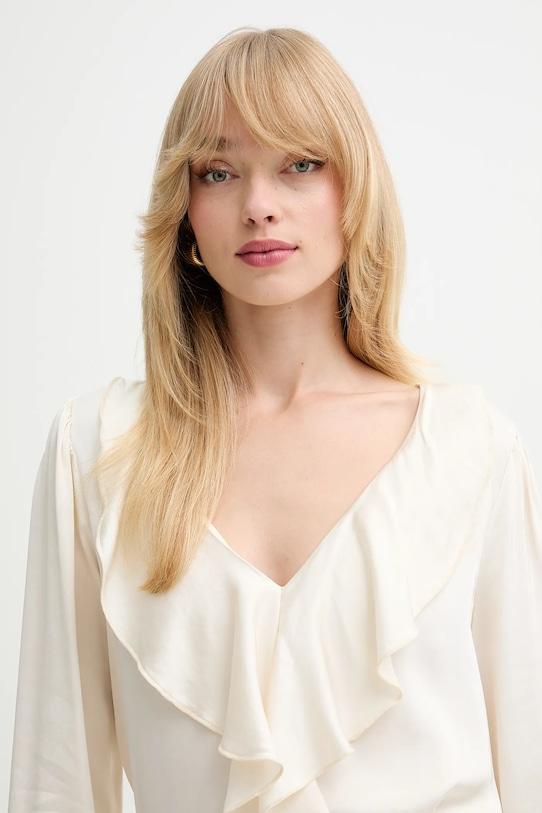 Блузка из коллекции Fracomina из вискозы, приятного на ощупь материала. - Обычная посадка. - Длинные, пышные рукава. - Рукава отделаны узкой эластичной манжетой. - Модель с декоративными оборками. - Длина: 68 см. - Ширина под мышками: 47 см. - Размеры указаны для размера: S.
