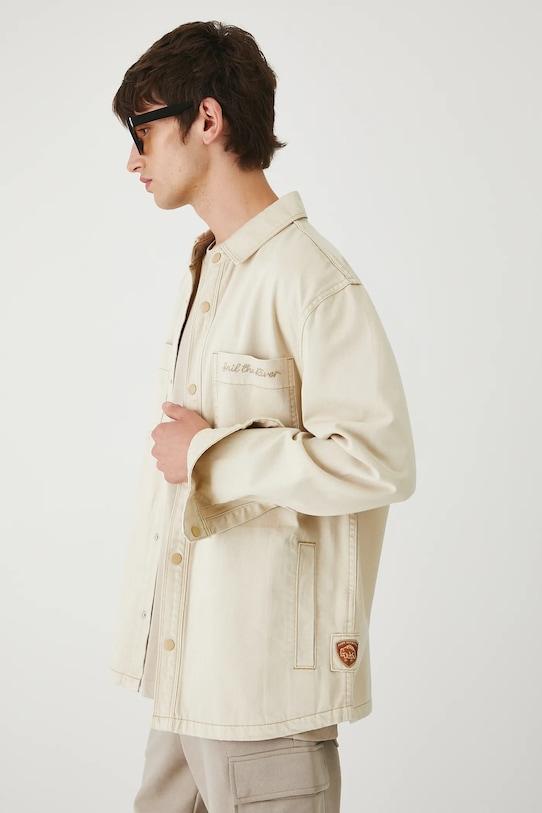Куртка из коллекции Medicine. Модель без подкладки выполнена из хлопкового денима. - Простой дизайн. - Длинный рукав. - Манжеты застегиваются на кнопки. - Модель с воротником. - Застежка-кнопка. - Два боковых накладных кармана. - Два накладных кармана на груди. - Модель с декоративной вышивкой. - Модель с нашивкой. - Неутепленная модель без подкладки. - Гладкий материал. - Длина рукава: 62,5 см. - Длина: 75 см. - Ширина груди: 59 см. - Ширина плеч: 52 см. - Размеры указаны для размера: M.