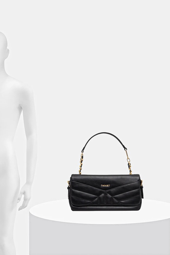 Небольшая сумочка из коллекции Twinset. Модель на молнии, выполнена из экокожи. - Магнитная застежка. - Имеет два отделения. - Внутренний карман на молнии для удобного и безопасного хранения телефона и других мелких предметов. - Модель на подкладке. - Не подходит для формата А4. - Имеет регулируемую ручку. - Входящий в комплект тканевый чехол защищает изделие от пыли. - Глубина: 10 см. - Высота: 16 см. - Ширина у основания: 30,5 см. - Максимальная длина ручки: 62 см. - Минимальная длина ручки: 54 см.