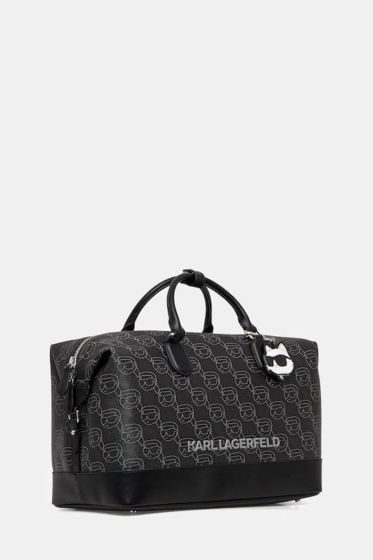 Дорожная сумка из коллекции Карла Лагерфельда. Изготовлена из экокожи. - Данное изделие частично изготовлено из переработанного полиэстера. - Имеет ручки и съемный регулируемый ремень. - Три внутренних кармана: один на молнии, два накладных. - Модель оснащена металлическими ножками, защищающими дно сумки. - Усиленное дно сумки позволяет изделию долго сохранять форму. - Вмещает формат А4. - Входящий в комплект тканевый чехол защищает изделие от пыли. - Ширина у основания: 40 см. - Высота: 30 см. - Глубина: 23 см.