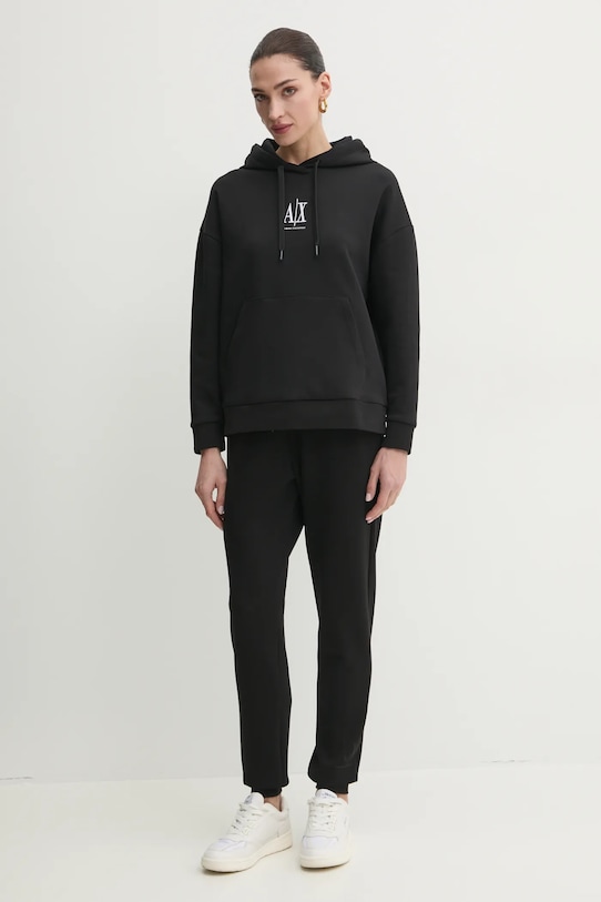 Эти спортивные брюки из коллекции Armani Exchange изготовлены из тонкого эластичного трикотажа. Они изготовлены из исключительно комфортного материала с высоким содержанием вискозы. - Высокая талия. - Эластичный пояс со шнурками. - Ножки отделаны манжетами. - Два накладных кармана спереди. - Декоративная деталь. - Ширина талии: 37 см. - Ширина бедер: 50 см. - Высота талии: 30 см. - Ширина штанины по низу: 11,5 см. - Ширина штанины: 29,5 см. - Длина внешнего шва: 105 см. - Размеры указаны для размера: S.