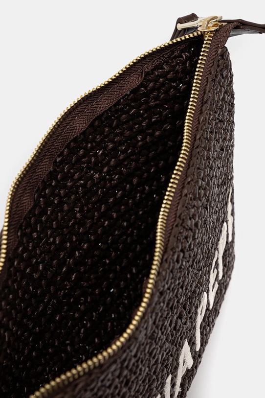 Небольшая сумочка-клатч из коллекции Patrizia Pepe. Модель выполнена из тканого материала, застёгивается на застёжку. - Модель из линейки Go Green, изготовленная из волокон, полученных с использованием экологичных производственных процессов, что снижает их воздействие на окружающую среду. - Застежка-молния. - Модель без подкладки. - Внутренних карманов нет. - Короткая ручка. - Не подходит для формата А4. - Входящий в комплект тканевый чехол защищает изделие от пыли. - Высота: 22 см. - Ширина у основания: 33 см.