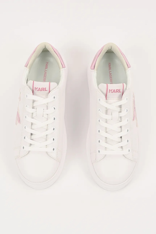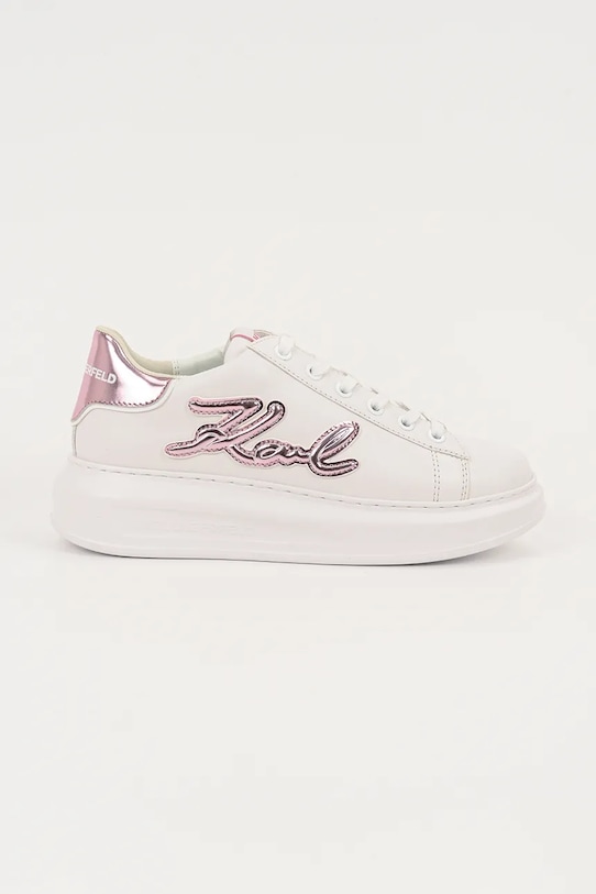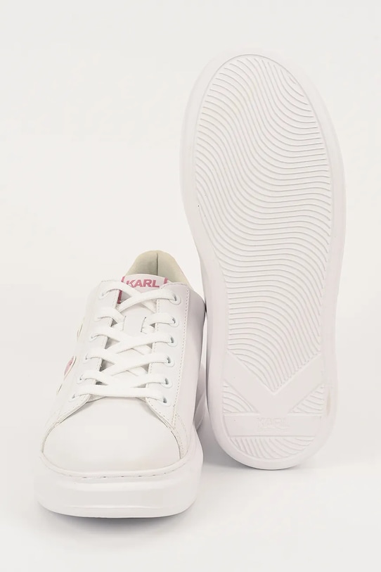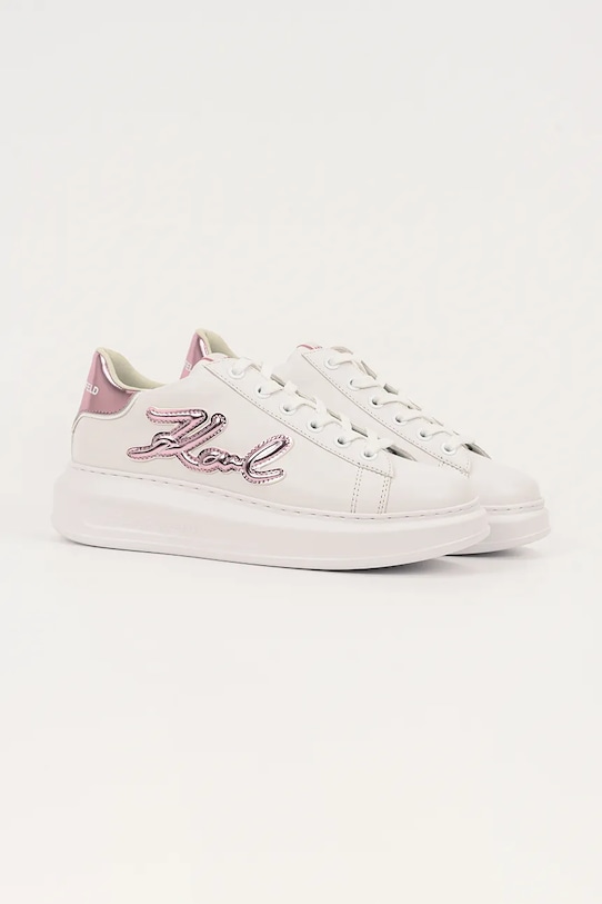 Кроссовки из коллекции Karl Lagerfeld. Изготовлены из натуральной кожи и оснащены слегка гибкой резиновой подошвой, которая прочна и устойчива к повреждениям. - Круглый, жёсткий носок. - Текстильная внутренняя часть комфортна для ног и облегчает содержание обуви в чистоте. - Усиленный задник обеспечивает отличную поддержку лодыжки и пятки. - Плоские шнурки устраняют давление на подъем стопы, обеспечивая хорошую посадку и комфорт. - Подошва из вспененного ЭВА. - Удобная стелька. - Платформенная модель. - 3D логотип.