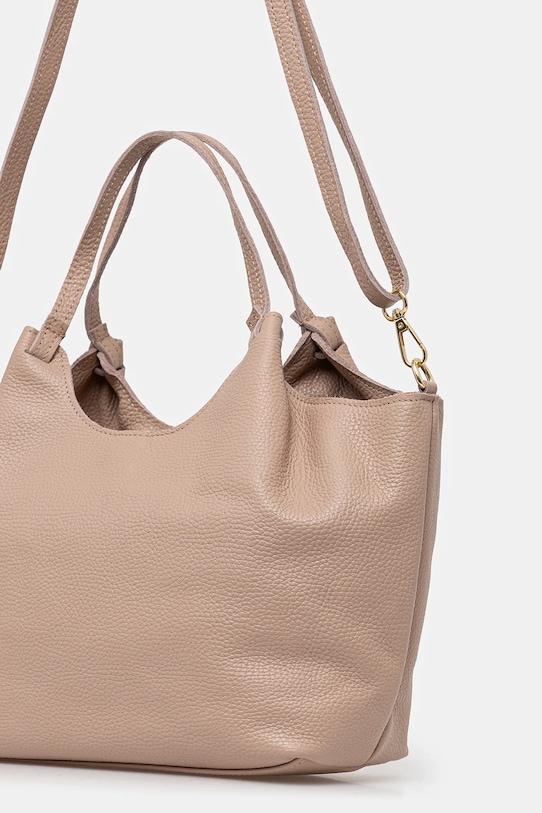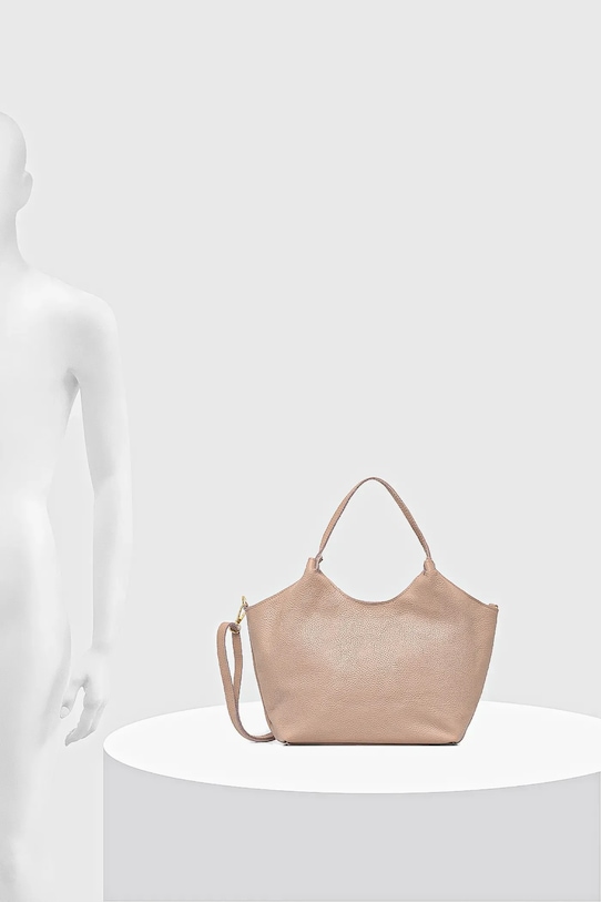 Сумка среднего размера из коллекции Answear LAB. Изготовлена из натуральной кожи, с застёжкой. - Входящий в комплект тканевый чехол защищает изделие от пыли. - Отделение на молнии. - Вмещает формат А4. - Имеет ручки и два съемных регулируемых ремня. - Внутренний карман на молнии. - Модель на подкладке. - Минимальная длина ремешка: 76 см. - Максимальная длина ремня: 130 см. - Длина ручки: 33 см. - Глубина: 11 см. - Высота: 26 см. - Ширина у основания: 25 см. - Ширина в самом широком месте: 33 см.