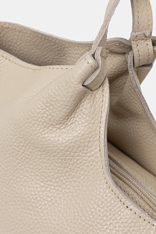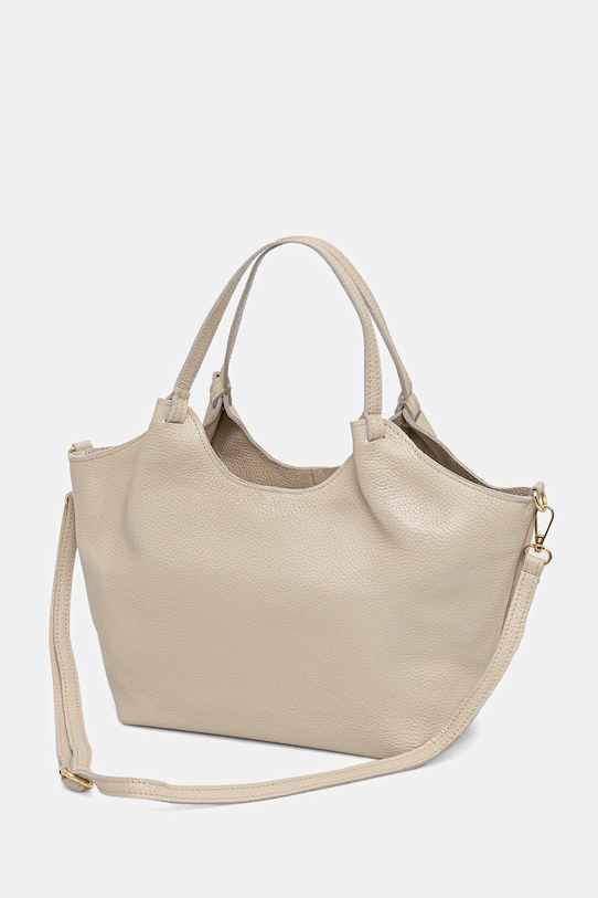 Сумка среднего размера из коллекции Answear LAB. Изготовлена из натуральной кожи, с застёжкой. - Входящий в комплект тканевый чехол защищает изделие от пыли. - Отделение на молнии. - Вмещает формат А4. - Имеет ручки и два съемных регулируемых ремня. - Внутренний карман на молнии. - Модель на подкладке. - Минимальная длина ремешка: 76 см. - Максимальная длина ремня: 130 см. - Длина ручки: 33 см. - Глубина: 11 см. - Высота: 26 см. - Ширина у основания: 25 см. - Ширина в самом широком месте: 33 см.