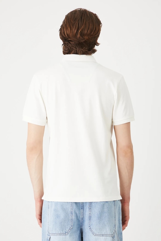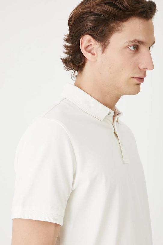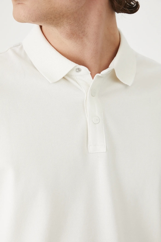 Рубашка-поло из коллекции Medicine. Изготовлена из структурированного трикотажа. - Материал с сертификатом OEKO-TEX Standard 100 гарантирует, что текстильные изделия, на которых он нанесен, не содержат вредных и потенциально опасных для человека и окружающей среды веществ. - Приталенный фасон. - Короткий рукав. - Модель с воротником. - Застегивается на короткую кнопку. - У него есть прорези. - Модель выполнена из структурного трикотажа. - Длина: 72 см. - Ширина груди: 51,5 см. - Размеры указаны для размера: M.