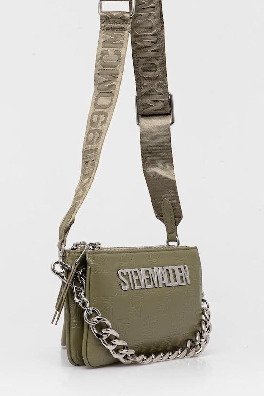 Небольшая сумочка из коллекции Steve Madden. Модель на молнии выполнена из искусственной кожи, которую легко чистить и ухаживать. - Эта модель частично изготовлена из переработанного полиэстера. - Двухкамерная модель. - Съемный регулируемый ремешок. - Модель с декоративной съемной цепочкой. - Имеет два внутренних кармана: один прорезной, другой на молнии. - Не подходит для формата А4. - Входящий в комплект тканевый чехол защищает изделие от пыли. - Ширина у основания: 20 см. - Высота: 13 см. - Глубина: 4,5 см.