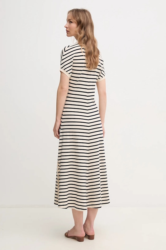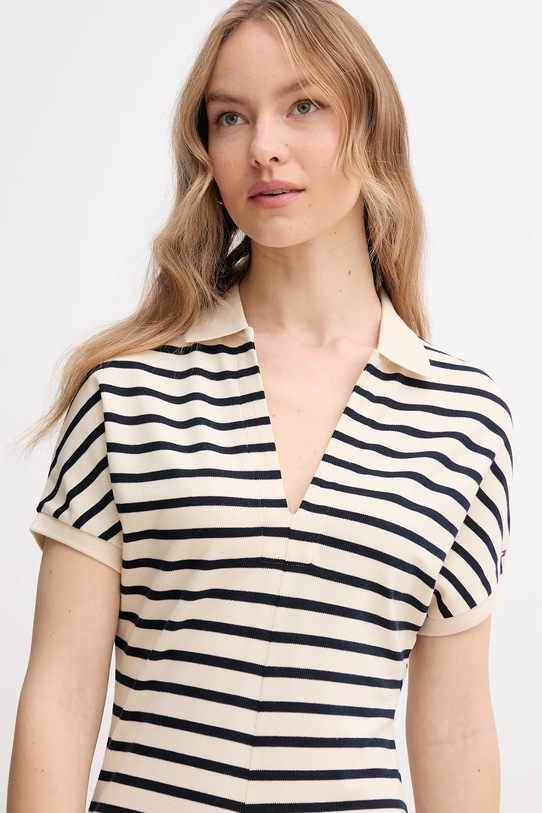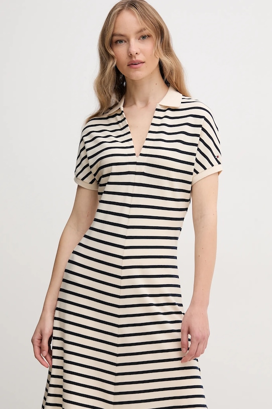 Это платье Tommy Hilfiger выполнено из тонкого, высокоэластичного трикотажа. Модель выполнена из исключительно комфортного материала с высоким содержанием лиоцелла. - Лиоцелл — это волокно из древесной целлюлозы, которое производится в ходе экологически устойчивого процесса производства, без использования токсичных веществ. - Модель макси длины. - Простой дизайн. - Короткий рукав. - Модель с воротником. - Привлекающие внимание разрезы. - Ширина под мышками: 48 см. - Длина: 132 см. - Размеры указаны для размера: S.