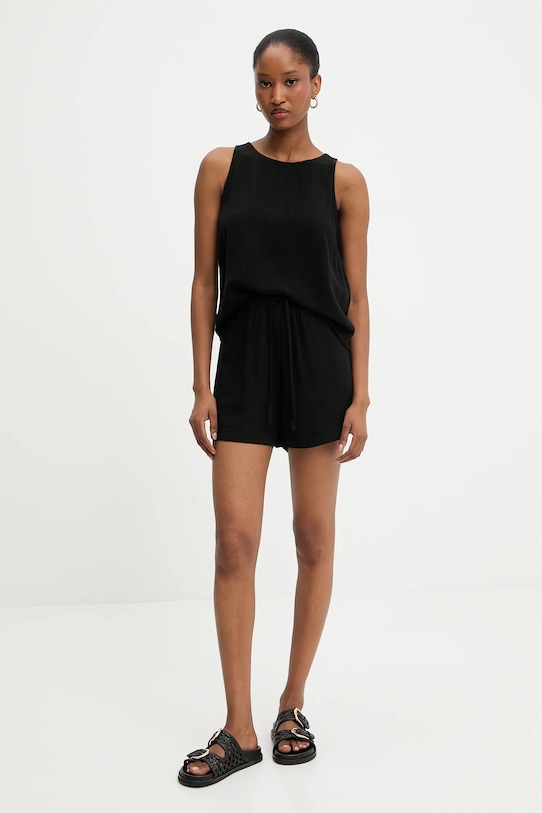 Этот комплект из коллекции Answear.LAB выполнен из тонкой, неэластичной ткани. Модель выполнена из дышащего материала с высоким содержанием вискозы. - Эластичный пояс со шнурками. - Два боковых накладных кармана. - Простой дизайн. - Круглый вырез. - Застегивается на пуговицы сзади. - Длина: 53 см. - Ширина под мышками: 45 см. - Ширина талии: 28 см. - Ширина бедер: 45 см. - Высота талии: 35 см. - Ширина штанины внизу: 32 см. - Длина внешней части штанины: 36 см. - Размеры указаны для размера: S.