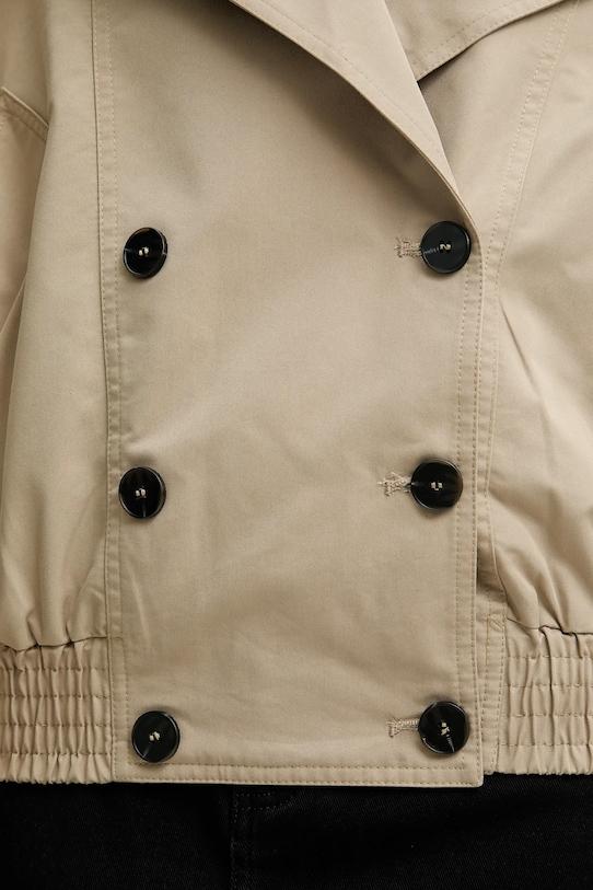 Куртка из коллекции Answear.LAB. Эта модель без подкладки выполнена из гладкой ткани. Коллекция доступна эксклюзивно на Answear.com. - Большой размер. - Неутепленная модель с подкладкой. - Двубортный пиджак с застежкой на пуговицы. - Два накладных кармана спереди для удобного хранения мелких предметов. - Классические лацканы. - Погоны на плечах. - Нижний край отделан удобной эластичной манжетой. - Длина рукава (от воротника): 69 см. - Длина: 53 см. - Ширина под мышками: 59 см. - Указаны размеры: XS/S.