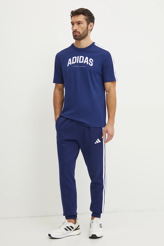 Эти спортивные штаны adidas изготовлены из трикотажного материала, отличающегося исключительным комфортом, с высоким содержанием хлопка. - Высокая талия с эластичным поясом. - Два боковых накладных кармана. - Модель с полосками. - Ножки отделаны удобными эластичными манжетами. - Тонкий, эластичный трикотаж. - Ширина талии: 38 см. - Ширина бедер: 53 см. - Высота талии: 30 см. - Ширина штанины внизу: 12 см. - Ширина штанины: 30 см. - Длина внешней части штанины: 101 см. - Размеры указаны для размера: M.
