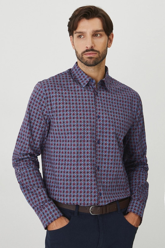 Эта рубашка из коллекции Medicine выполнена из ткани с мелким узором и имеет классический, слегка жесткий воротник. - Рубашка прямого кроя мягко облегает фигуру, но не подчеркивает ее, обеспечивая свободу движений. - Длинный рукав. - Манжеты на пуговицах. - Слегка усиленный классический воротник Kent. - Застежка на пуговицы. - Ткань с мелким рисунком. - Окружность воротника: 43,5 см. - Длина рукава: 68 см. - Длина: 78,1 см - Ширина груди: 57 см. - Ширина плеч: 47 см. - Размеры указаны для размера: L.