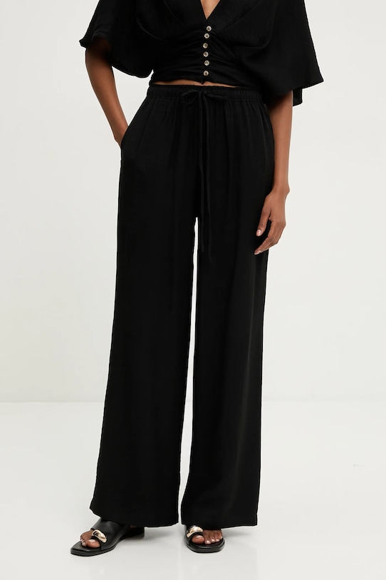 Этот комплект из коллекции Answear.LAB выполнен из тонкой, неэластичной ткани. Модель выполнена из дышащего материала с высоким содержанием вискозы. - Свободный покрой. - Широкие штанины. - Эластичный пояс со шнурками. - Два боковых накладных кармана. - Острый вырез. - Застежка на пуговицы. - Короткий рукав. - Модель со складками. - Эластичная вставка сзади. - Ширина талии: 36 см. - Ширина бедер: 47 см. - Высота талии: 30 см. - Длина внешней части штанины: 103 см. - Длина рубашки: 50 см.