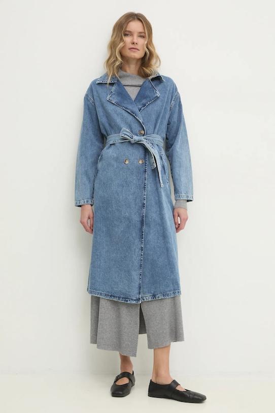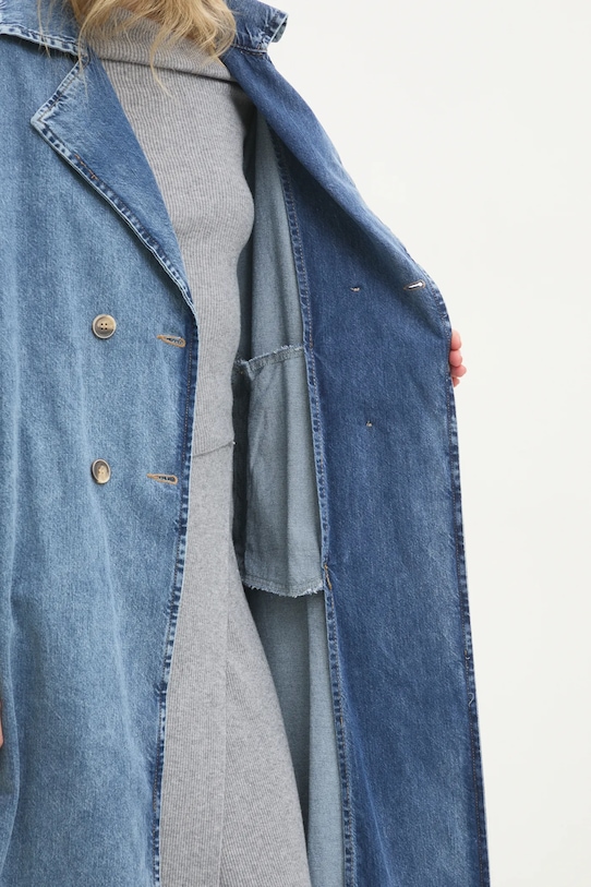 Это пальто из коллекции Answear.LAB. Это джинсовое пальто без подкладки сшито из исключительно комфортной хлопковой ткани. - Расклешенный крой. - Двубортный пиджак с застежкой на пуговицы. - Классические лацканы. - Неутепленная модель без подкладки. - Декоративно выстиранный деним. - Текстильный ремешок в комплекте. - Крой рукава со спущенной линией плеча не ограничивает подвижность. - Длина рукава (от воротника): 69 см. - Длина: 111 см. - Ширина под мышками: 50 см, - Размеры указаны для размера: S.