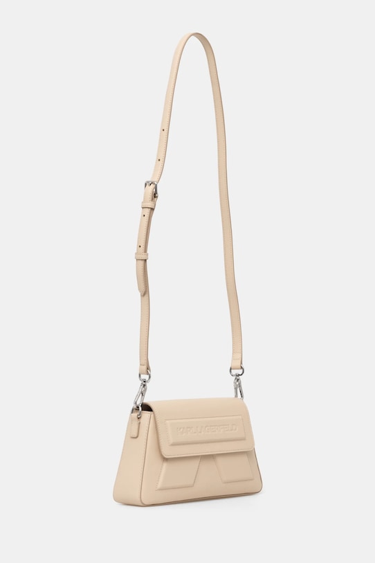 Небольшая сумочка из коллекции Karl Lagerfeld. Модель на молнии выполнена из натуральной кожи. В комплект входит тканевый пыльник для защиты изделия от пыли. - Модели линейки Karl Cares изготовлены из материалов, произведенных в ходе устойчивого, экологически чистого процесса производства. - Внутренний накладной карман для телефона. - Клапан застегивается на магнит. - Модель на подкладке. - Не подходит для формата А4. - Съемный регулируемый ремешок. - Глубина: 6 см. - Высота: 16 см. - Ширина у основания: 26 см.