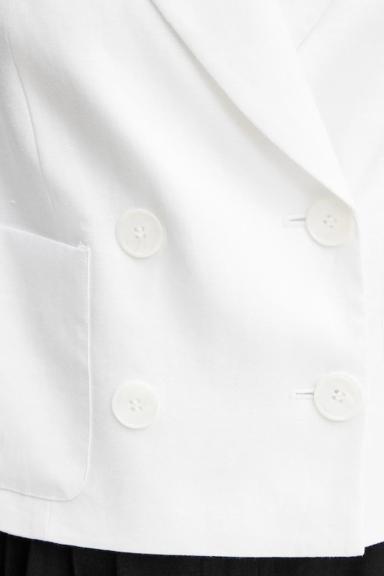Эта куртка из коллекции Luisa Spagnoli выполнена из льна. Эта лёгкая ткань идеально подходит для тёплого времени года. - Застежка на пуговицы. - Два накладных кармана спереди. - Модель на подкладке. - Длина: 60 см. - Ширина под мышками: 46 см. - Размеры указаны для размера: 36.