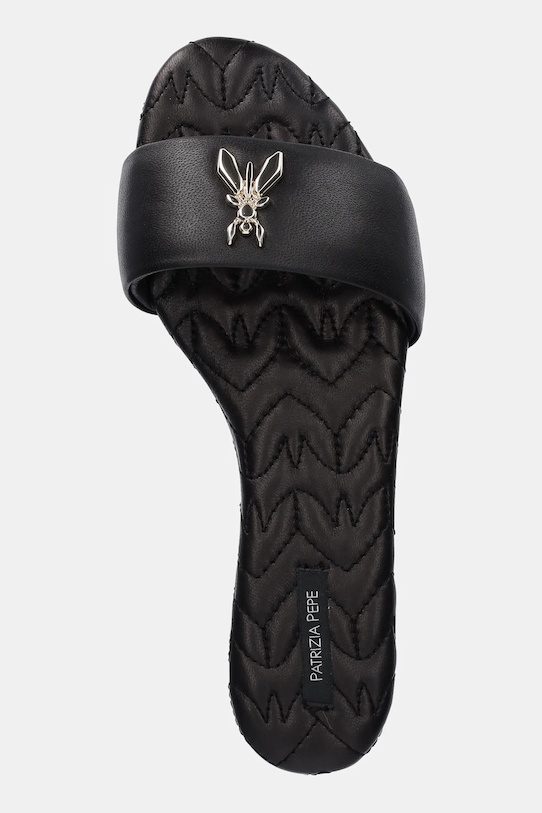 Шлёпанцы из коллекции Patrizia Pepe, изготовленные из натуральной кожи. В комплект входит тканевый пыльник для защиты изделия от пыли. - Модель из линейки Go Green, изготовленная из волокон, полученных с использованием экологичных производственных процессов, что снижает их воздействие на окружающую среду. - Кожаная стелька комфортна для стопы и предотвращает натирание, потертости и появление неприятного запаха. - Модель на плоской подошве. - Кожаная подошва. - Длина вставки: 24,5 см. - Размеры указаны для размера: 39.