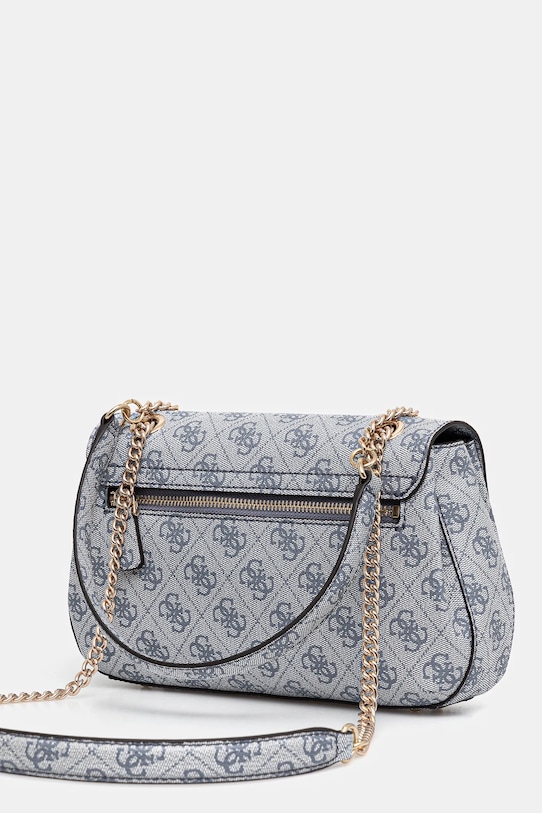 Небольшая сумочка из коллекции Guess. Модель на молнии, выполнена из экокожи. - Содержит переработанный пластик. - Клапан застегивается на магнит. - Не подходит для формата А4. - Модель на подкладке. - Длинные ручки. - Модель оснащена металлическими ножками, защищающими дно сумки. - Входящий в комплект тканевый чехол защищает изделие от пыли. - Внутренний карман на молнии. - Количество слотов для карт: 6. - Длина ремешка: 70 см. - Глубина: 8 см. - Ширина у основания: 26 см. - Высота: 15 см.