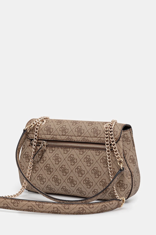 Небольшая сумочка из коллекции Guess. Модель на молнии, выполнена из экокожи. - Содержит переработанный пластик. - Клапан застегивается на магнит. - Не подходит для формата А4. - Модель на подкладке. - Длинные ручки. - Модель оснащена металлическими ножками, защищающими дно сумки. - Входящий в комплект тканевый чехол защищает изделие от пыли. - Внутренний карман на молнии. - Количество слотов для карт: 6. - Длина ремешка: 70 см. - Глубина: 8 см. - Ширина у основания: 26 см. - Высота: 15 см.
