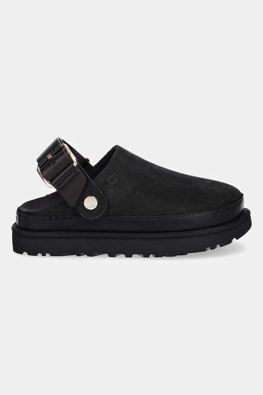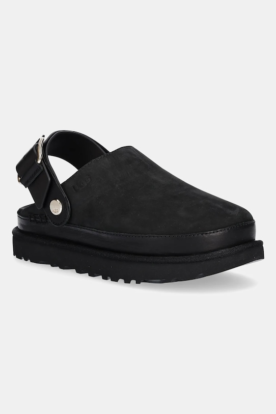Шлёпанцы из коллекции UGG. Изготовлены из нубука. - Модель частично изготовлена из волокон, произведенных с использованием устойчивых производственных процессов, что позволяет снизить их воздействие на окружающую среду. - Подвижная пятка позволяет носить обувь двумя способами. - Застежка-пряжка со штифтом для индивидуальной подгонки. - Текстильная внутренняя часть комфортна для ног и облегчает содержание обуви в чистоте. - Контурная стелька. - Подошва из ЭВА обеспечивает более мягкое ощущение и дополнительную амортизацию.