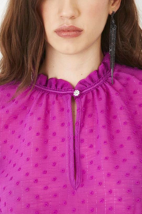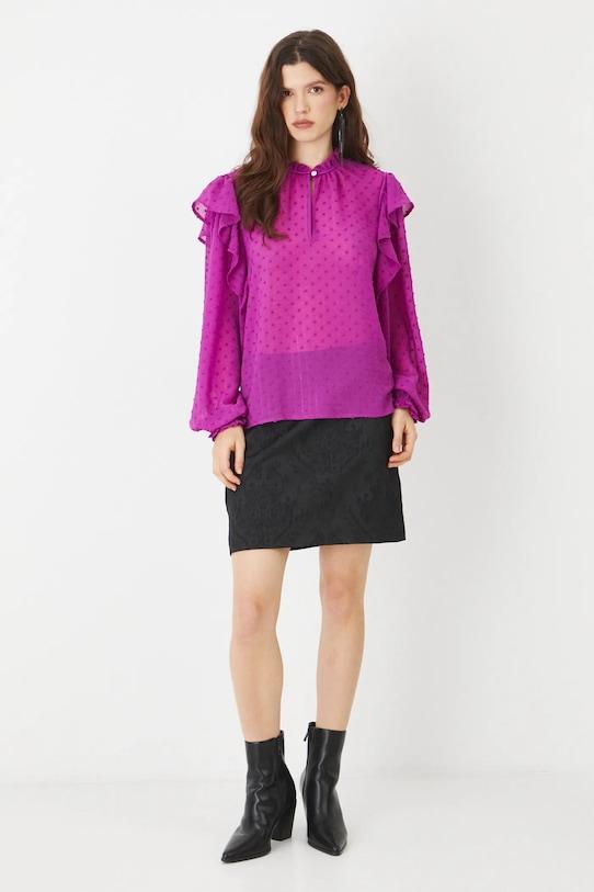 Эта блузка из коллекции Medicine выполнена из фактурной ткани и дополнена декоративным воротником-стойкой. - Обычная посадка. - Длинные, пышные рукава. - Рукава отделаны резинкой. - Модель с воротником-стойкой. - Спереди разрез, застегивающийся на декоративную пуговицу. - Модель с декоративными оборками. - Материал с текстурой. - Модель изготовлена из прозрачного материала. - Декоративная отделка. - Длина рукава: 64 см. - Длина: 61,5 см. - Ширина груди: 52 см. - Размеры указаны для размера: S.