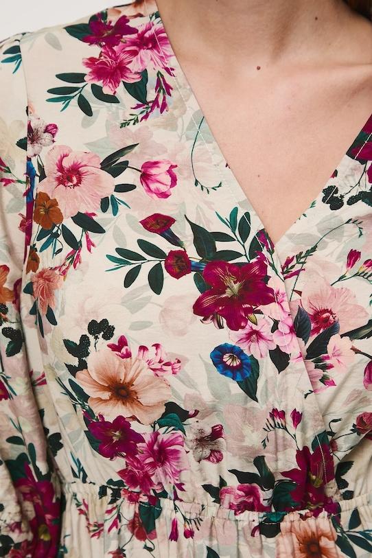 Платье из коллекции «Медицина». Расклешенный фасон из узорчатой ткани. - Расклешенный крой. - Рукав три четверти. - Рукава отделаны резинкой. - Острый вырез-конверт. - Эластичный пояс. - Модель с декоративной оборкой. - Узорчатая ткань. - Узор с цветочным мотивом. - Ширина талии (до растягивания): 34 см. - Ширина талии (после растяжения): 47 см. - Ширина груди: 49,5 см. - Длина: 93 см. - Размеры указаны для размера: S. - Ремешок, показанный на фотографии, в комплект поставки не входит.