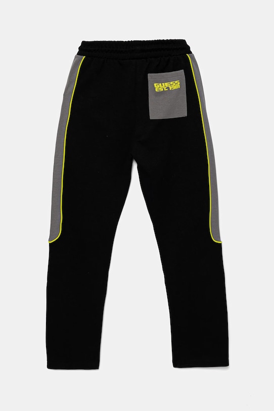 Детские спортивные брюки из коллекции Guess из слегка эластичного трикотажа. Модель выполнена из исключительно комфортного материала с высоким содержанием хлопка. - Простой дизайн, не стесняющий движений. - Эластичный пояс со шнурками. - Два боковых накладных кармана. - Накладной карман сзади, без застежки. - Ширина талии: 32 см. - Ширина бедер: 47 см. - Высота талии: 29 см. - Ширина штанины внизу: 18 см. - Ширина штанины: 25 см. - Длина штанины: 103 см. - Размеры указаны для роста: 166 - 175 см.
