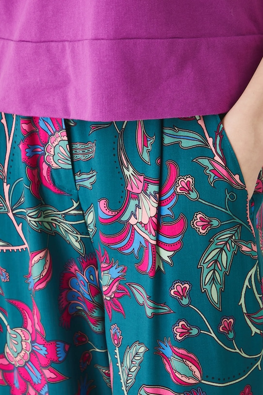 Брюки из коллекции «Медицина». Изготовлены из узорчатой ткани. - Широкий фасон штанины. - Повышенное состояние. - Эластичная резинка сзади. - Застежка на молнию и крючок. - Накладные карманы. - Широкие штанины. - Укороченная нога. - Узорчатая ткань. - Узор с растительным мотивом. - Ширина талии (до растягивания): 37 см. - Ширина талии (после растяжения): 43 см. - Высота талии: 30,5 см. - Ширина штанины внизу: 32 см. - Длина по внутреннему шву: 60 см. - Размеры указаны для размера: S.