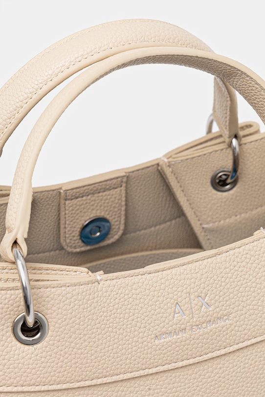 Большая сумка из коллекции Armani Exchange. Модель на молнии, выполнена из экокожи. - Магнитная застежка. - Модель без подкладки. - Два внутренних накладных кармана. - Сумка для ношения в руке или на плече. - Имеет ручки и съемный регулируемый ремень. - Вмещает формат А4. - Входящий в комплект тканевый чехол защищает изделие от пыли. - Минимальная длина ремня: 110 см. - Максимальная длина ремня: 114 см. - Длина ручки: 29 см. - Глубина: 16 см. - Высота: 27 см. - Ширина у основания: 35 см.