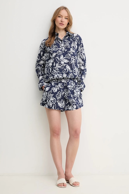 Рубашка и шорты из коллекции Lauren Ralph Lauren, выполненные из тонкой, неэластичной ткани. Модель выполнена из исключительно комфортного и дышащего материала, идеально подходящего для теплого времени года. - Свободный верх и прямой низ. - Длинный рукав. - Крой рукава со спущенной линией плеча не ограничивает подвижность. - Модель с воротником. - Удобная застежка на кнопки позволяет легко надевать и снимать. - Высокая талия с резинкой предотвращает скольжение во время движения. - Два боковых накладных кармана.