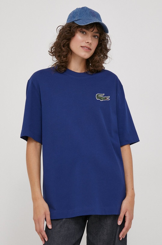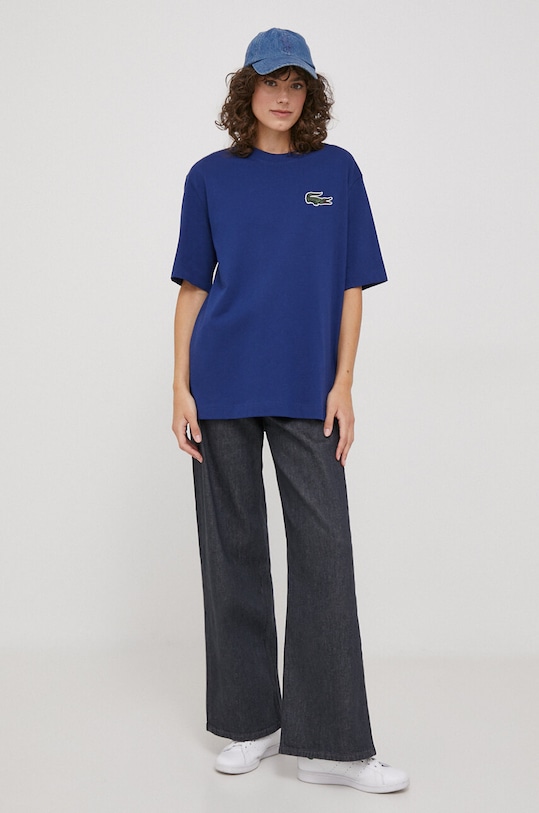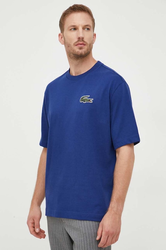 Эта футболка из коллекции Lacoste. Она сшита из гладкого трикотажа. Тонкого, плотного материала. - Этот продукт изготовлен из сертифицированного органического хлопка, который выращен и собран из растений, не содержащих ГМО, без использования химических удобрений и пестицидов. - Свободный покрой. - Круглый вырез. - Короткий рукав. - Заниженная линия плеча. - Тонкий, слегка эластичный трикотаж. - Нашивка с логотипом бренда. - Длина: 75 см. - Ширина под мышками: 62 см. - Размеры указаны для размера: M.
