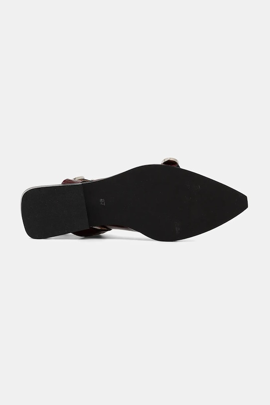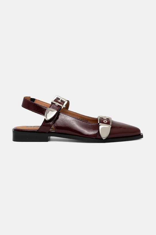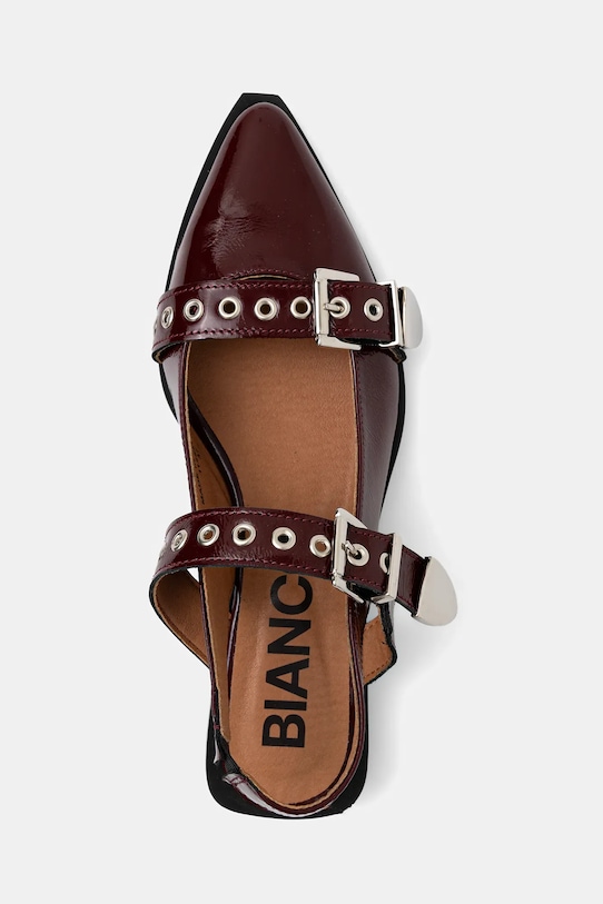Эти балетки из лакированной кожи из коллекции Bianco — высококачественный продукт, изготовленный в Португалии. - Заостренный, жесткий нос. - Модель с открытой пяткой. - Застежка на две пряжки со штифтом для индивидуальной посадки. - Модель с эластичной вставкой. - Контурная стелька поддерживает свод стопы и обеспечивает длительный комфорт. - Текстильная внутренняя часть комфортна для ног и облегчает содержание обуви в чистоте. - Резиновая подошва прочная и устойчивая к повреждениям. - Модель на плоской подошве.