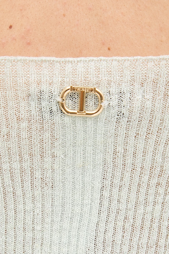 Этот топ из коллекции Twinset выполнен из тонкого эластичного трикотажа. Эффектный, мерцающий материал с металлизированной нитью. - Приталенный крой, подчеркивающий силуэт. - Алмазный вырез. - Модель выполнена из трикотажного полотна в рубчик. - Материал с металлической нитью.