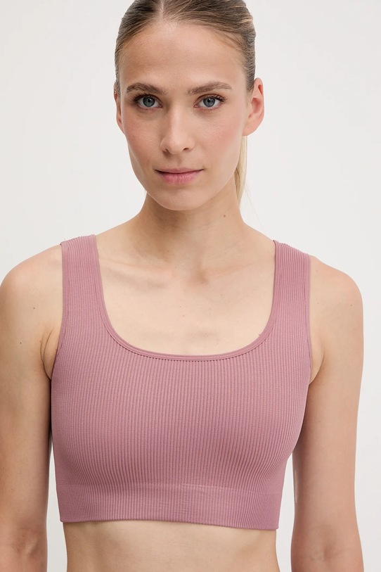 Этот спортивный бюстгальтер из коллекции Hummel имеет низкую поддержку, мягкую чашку и нерегулируемые бретели. - Модель изготовлена из материала с применением технологии BeeCool, которая обеспечивает терморегуляцию и ощущение сухости во время тренировок. - Модель выполнена из трикотажного полотна в рубчик, которое отличается особой эластичностью и мягкостью, благодаря чему хорошо облегает тело и обеспечивает комфорт при носке. - Мягкая чашечка без косточек и других жестких элементов обеспечивает полный комфорт использования.