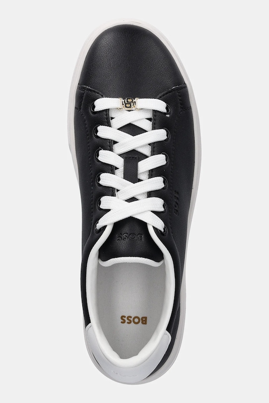 Эти кроссовки BOSS изготовлены из кожи с покрытием. Верх из непористого материала легко чистится влажной тканью. - Круглый, мягкий нос. - Резиновая рифленая подошва долговечна и обеспечивает хорошее сцепление. - Усиленный задник с мягким наполнителем защищает пятку от истирания. - Плоские шнурки устраняют давление на подъем стопы, обеспечивая хорошую посадку и комфорт. - Текстильная стелька комфортна для стопы и облегчает содержание обуви в чистоте. - Длина вставки: 25 см. - Размеры указаны для размера: 38.
