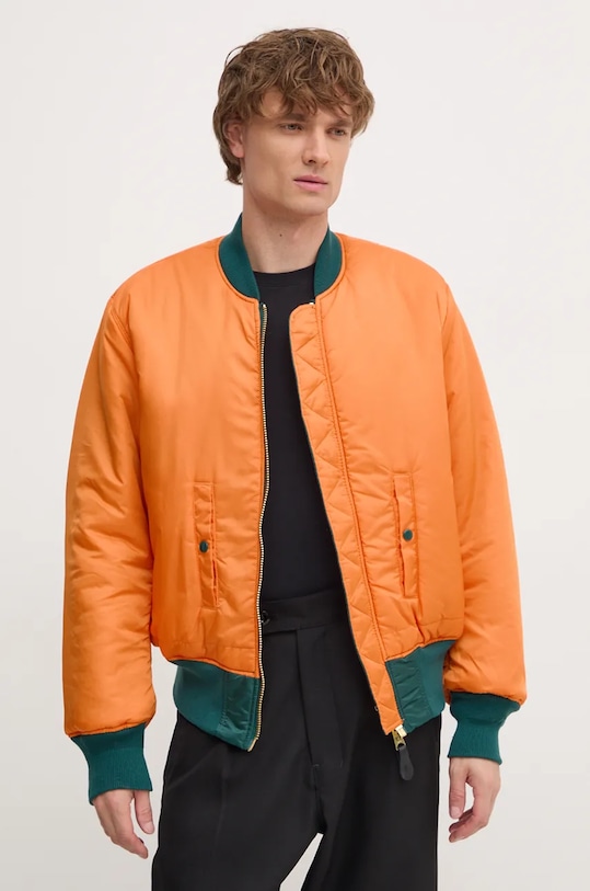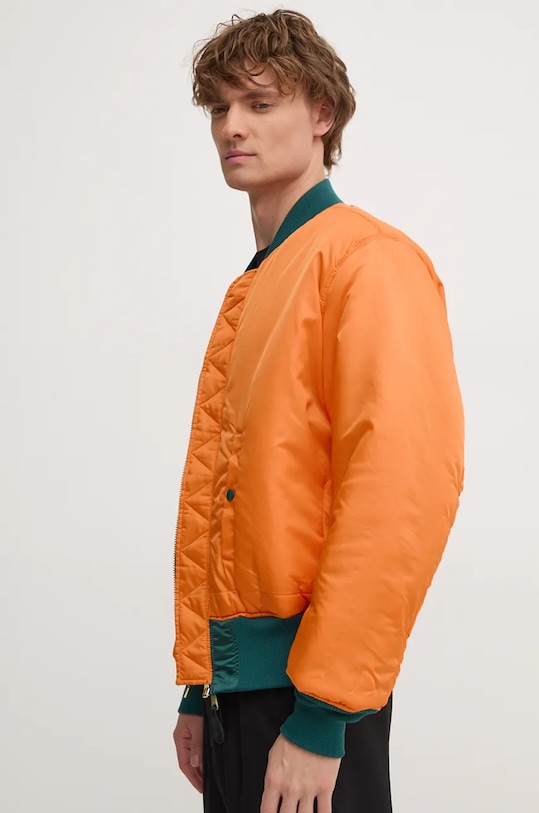 Куртка-бомбер из коллекции Alpha Industries. Эта модель без подкладки выполнена из гладкой ткани. Двусторонняя, что обеспечивает полную функциональность с любой стороны. - Двусторонняя модель. - Отделка ребер. - Застежка-молния. - Декоративные оборки. - Два боковых кармана с застежкой на кнопку. - Дополнительный карман на молнии на рукаве позволяет хранить необходимые вещи. - Длина рукава: 66 см. - Длина: 70 см. - Ширина под мышками: 62 см. - Ширина плеч: 45 см. - Размеры указаны для размера: L.