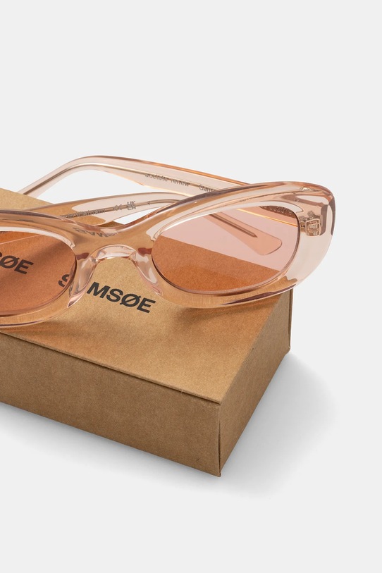 Солнцезащитные очки из коллекции Samsoe Samsoe. Модель с гладкими линзами и пластиковой оправой. Защита от ультрафиолета UV 400. - Форма оправы: овальная. - Кат. 1 (пропускает 43–80% света) — слегка тонированные линзы, часто жёлтые или янтарные. Подходит для условий слабого освещения. - УФ-фильтр защищает чувствительную радужную оболочку от UVA- и UVB-излучения. - Модель поставляется с жестким футляром для хранения. - Модель комплектуется мягкой сумкой для хранения. - Ширина рамы: 150 мм. - Ширина линзы: 50 мм.