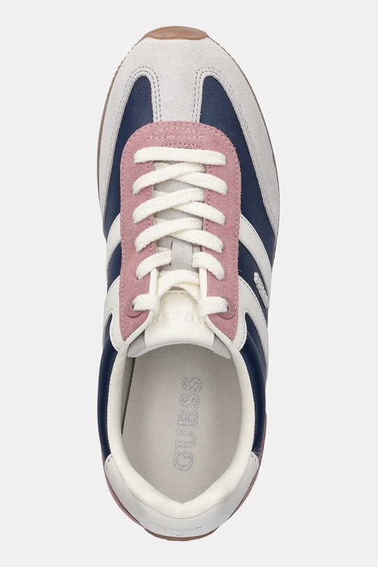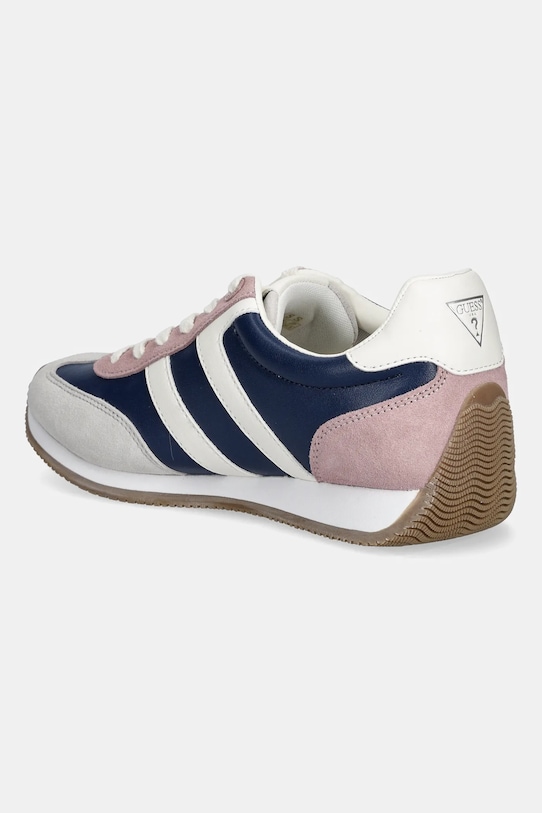 Кроссовки из коллекции Guess, изготовленные из комбинации замши и искусственной кожи, легкие и удобные, идеально подходят для повседневной носки. - Слегка затвердевший нос. - Усиленный задник обеспечивает отличную поддержку лодыжки и пятки. - Классическая шнуровка позволяет индивидуально подогнать обувь по ноге. - Резиновая подошва прочная и устойчивая к повреждениям. - Текстильная стелька комфортна для стопы и облегчает содержание обуви в чистоте. - Длина вставки: 26 см. - Размеры указаны для размера: 39.