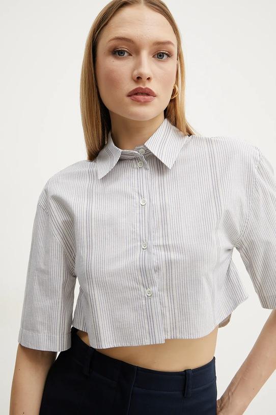 Рубашка из коллекции Patrizia Pepe из дышащей хлопковой ткани. - Удобная застежка на кнопки позволяет легко надевать и снимать. - Короткий рукав. - Свободный крой со спущенными плечами. - Длина: 44 см. - Ширина под мышками: 47 см. - Размеры указаны для размера: 36.