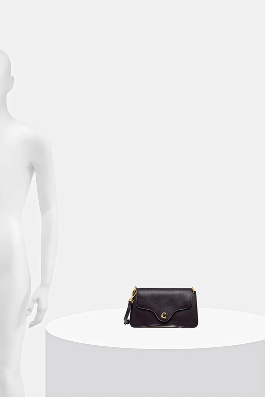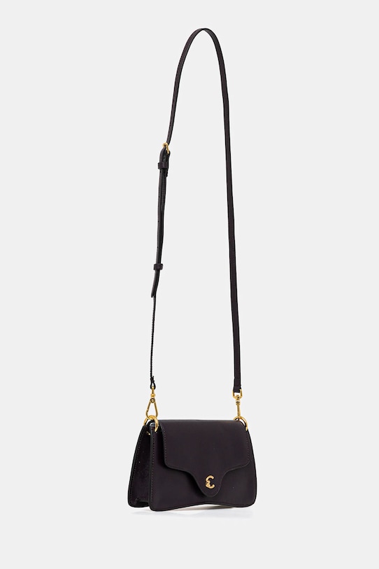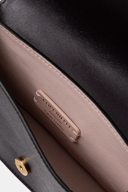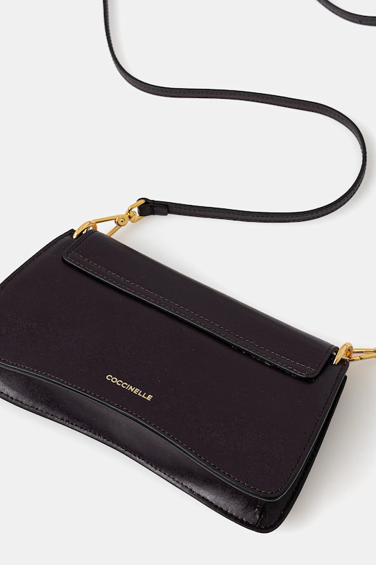 Небольшая сумочка из коллекции Coccinelle. Модель на молнии, выполнена из натуральной кожи. - Магнитная застежка. - Внутренних карманов нет. - Модель без подкладки. - Не подходит для формата А4. - Съемный регулируемый ремешок. - Усиленное дно сумки позволяет изделию долго сохранять форму. - Входящий в комплект тканевый чехол защищает изделие от пыли. - Минимальная длина ремешка: 102 см. - Максимальная длина ремня: 130 см. - Глубина: 4,5 см. - Высота: 14 см. - Ширина у основания: 22 см.
