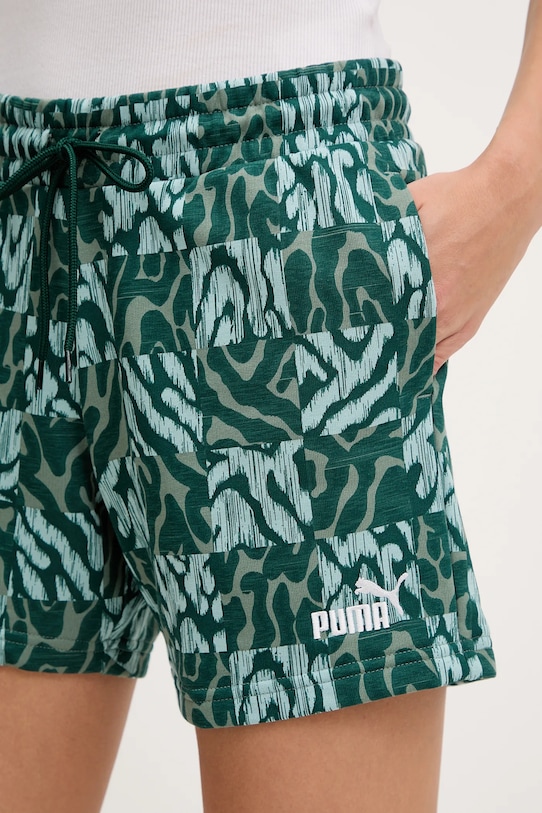 Шорты из коллекции Puma из узорчатого трикотажа. Изготовлены из исключительно комфортного материала с высоким содержанием хлопка. - Модель из линейки продукции Puma Forever Better, изготовленная из переработанных материалов. - Простой дизайн, не стесняющий движений. - Эластичный пояс со шнурками. - Два боковых накладных кармана. - Ширина талии: 34 см. - Ширина бедер: 47 см. - Высота талии: 26 см. - Ширина штанины внизу: 27 см. - Длина внешней части штанины: 33 см. - Размеры указаны для размера: S.